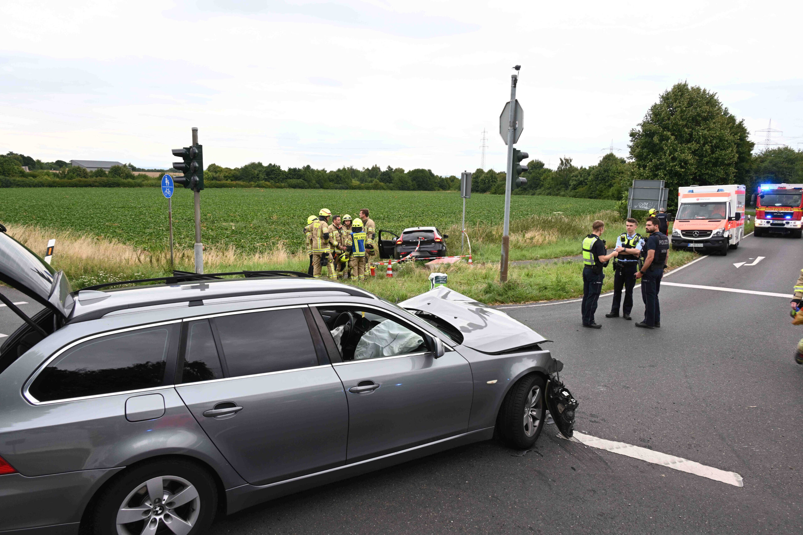 Bei einem Verkehrsunfall am Sonntagabend auf der K20, Hauptstraße, zwischen Pulheim-Stommeln und Bergheim-Fliesteden, sind drei Menschen verletzt worden. Die Kollision ereignete sich gegen 18:36 Uhr im Kreuzungsbereich zur L93. Zwei Fahrzeuge waren an dem Unfall beteiligt, eines davon kam mitten auf der Kreuzung zum Stehen, das andere schleuderte über den Fahrradweg in den angrenzenden Seitenstreifen. Eine Person war im Fahrzeug eingeschlossen, eine weitere wurde am Straßenrand von Ersthelfern betreut.