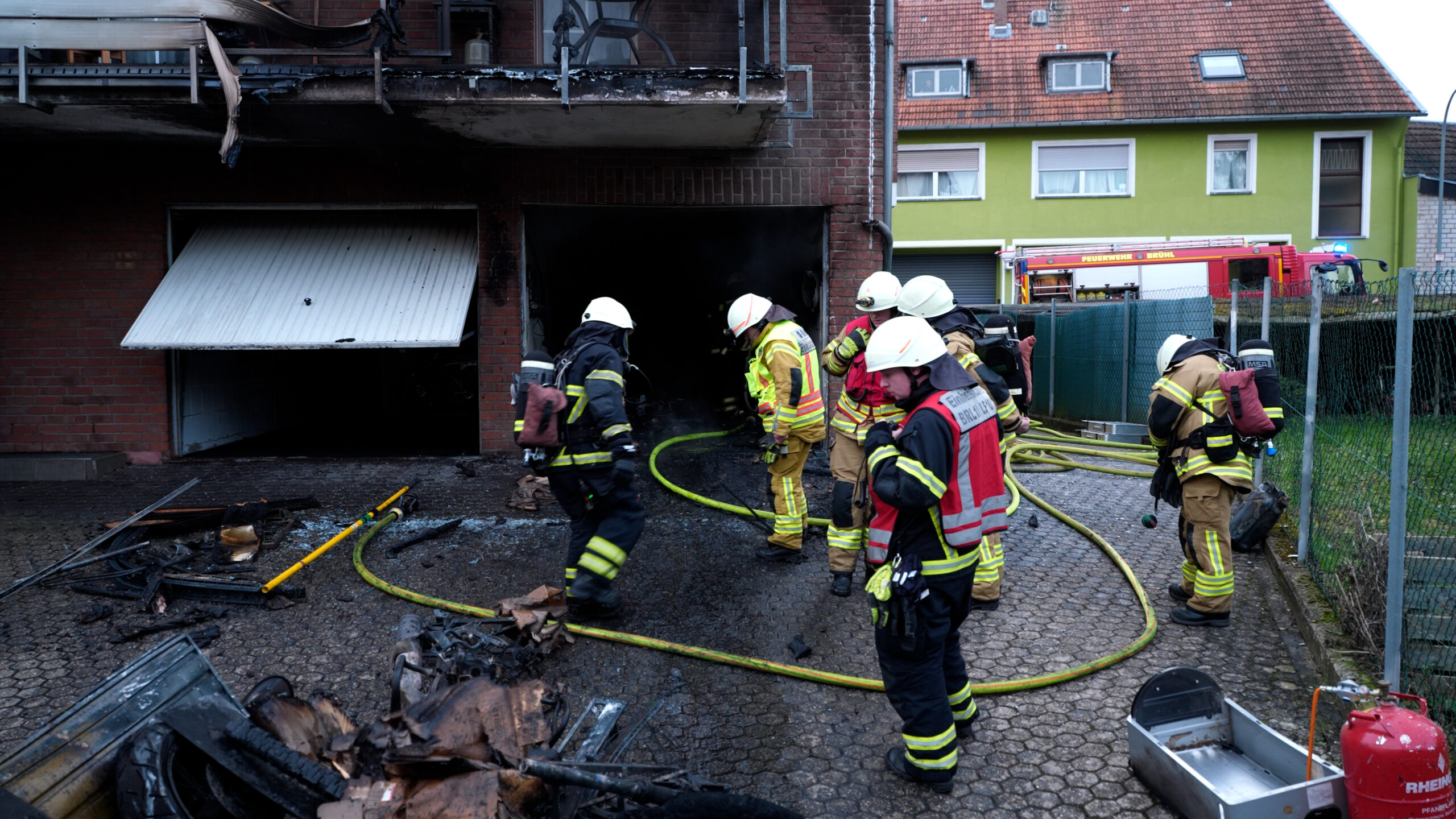 Brühl – Dichter Rauch stieg am Samstagmittag über der Badorfer Straße 27. auf. Mehrere Personen meldeten gegen 15:30 Uhr der Leitstelle der Feuerwehr des Rhein-Erft-Kreises ein Feuer, das sich rasend schnell ausbreitete. Als die Feuerwehr eintraf, stand eine Garage im Erdgeschoss eines Mehrfamilienhauses bereits in Vollbrand. Eine massive Rauchsäule war weithin sichtbar.