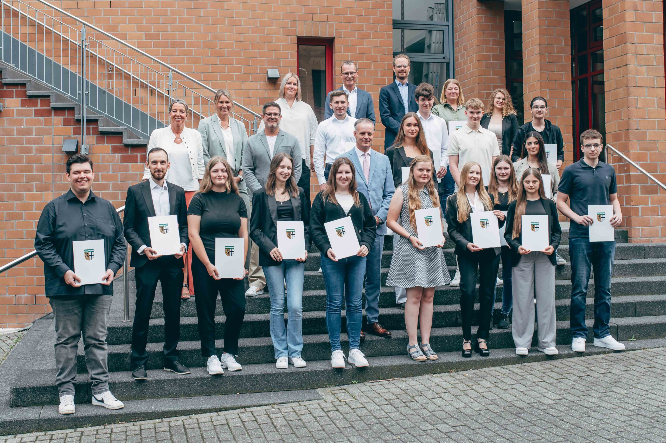 Zu den neuen Auszubildenden zählen vier Kreisinspektoranwärterinnen und -anwärter im dualen Studium Bachelor of Laws, zwei im dualen Studium Bachelor of Arts, sechs Kreissekretäranwärterinnen und -anwärter sowie drei Verwaltungsfachangestellte. Zudem beginnt ein IT-Fachinformatiker für Systemintegration sowie ein Vermessungstechniker ihre Ausbildung. Ein Landesarchivinspektoranwärter, der nach seinem Vorbereitungsdienst übernommen wird, ergänzt das Team. Bereits im April 2024 startete eine Kreisbrandreferendarin ihren Vorbereitungsdienst.