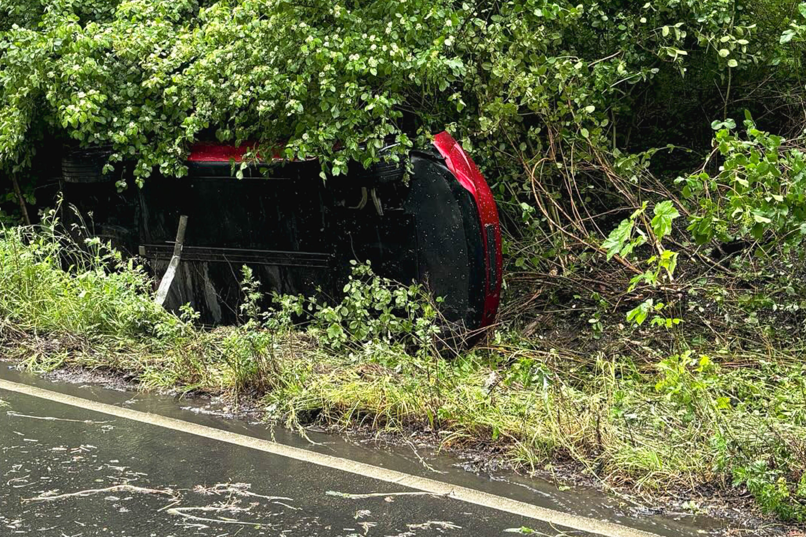 Frechen – Am Dienstagabend ist es in Frechen-Benzelrath zu einem Alleinunfall gekommen: Ein 23-jähriger verlor gegen 19.30 Uhr die Kontrolle über seinen Tesla. Das Fahrzeug kam von der regennassen Fahrbahn ab, drehte sich und landete schließlich auf der Beifahrerseite in einem Gebüsch am Straßenrand.