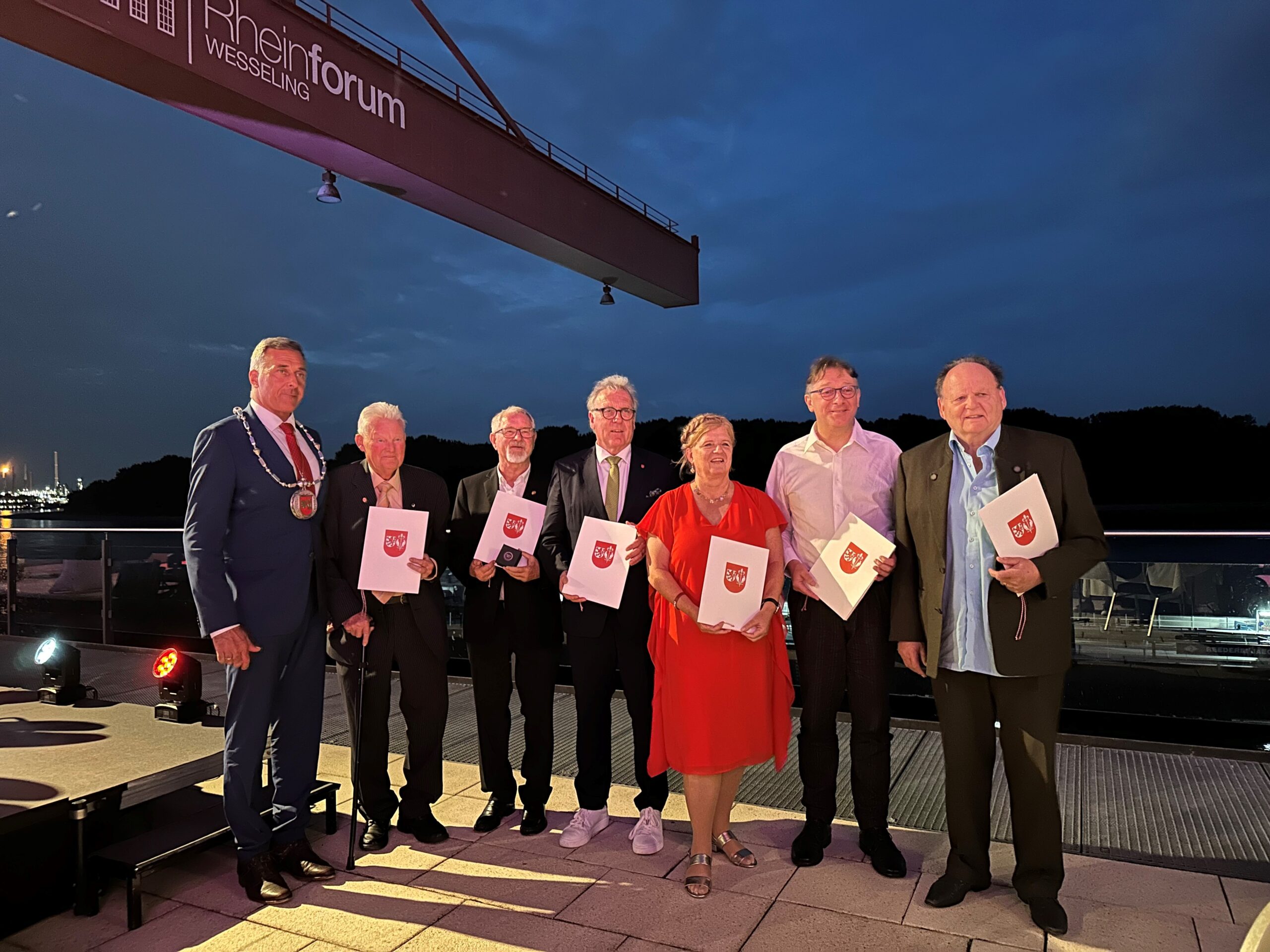 Bild: v.l.n.r. Bürgermeister Ralph Manzke, Theo Engels, Winfried Marx, Paul Hambach, Ute Meiers, Elmar Gillet und Manfred Rothermund. Foto: Stadt Wesseling