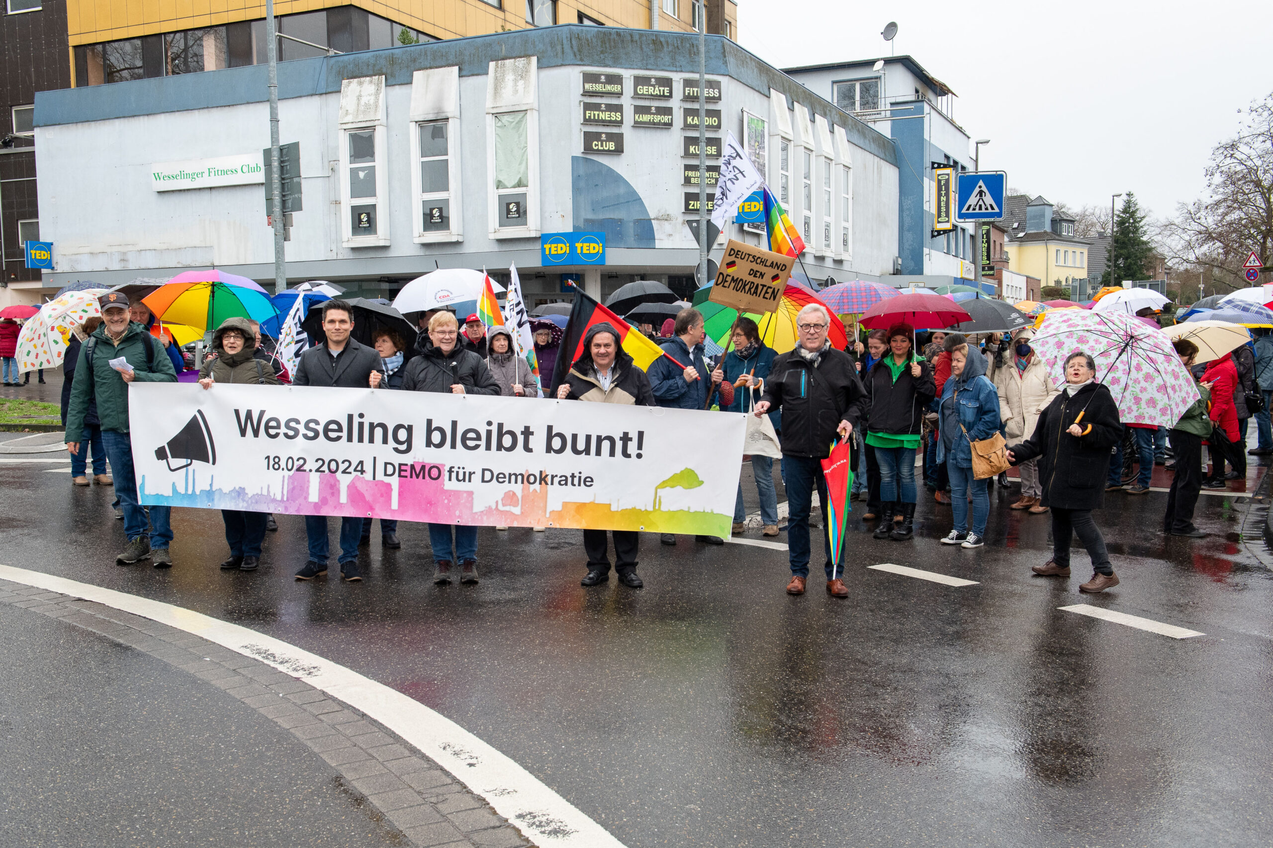 Trotz des schlechten Wetters und des Regens strömten am Sonntag, den 18. Februar, 2500 Menschen aus Wesseling und Umgebung zusammen, um ein starkes Zeichen für Demokratie und Vielfalt zu setzen. Das Aktionsbündnis „Wesseling bleibt bunt!“ hatte zur Demonstration aufgerufen, um gegen den erstarkenden Einfluss rechtsradikaler Kräfte anzutreten.