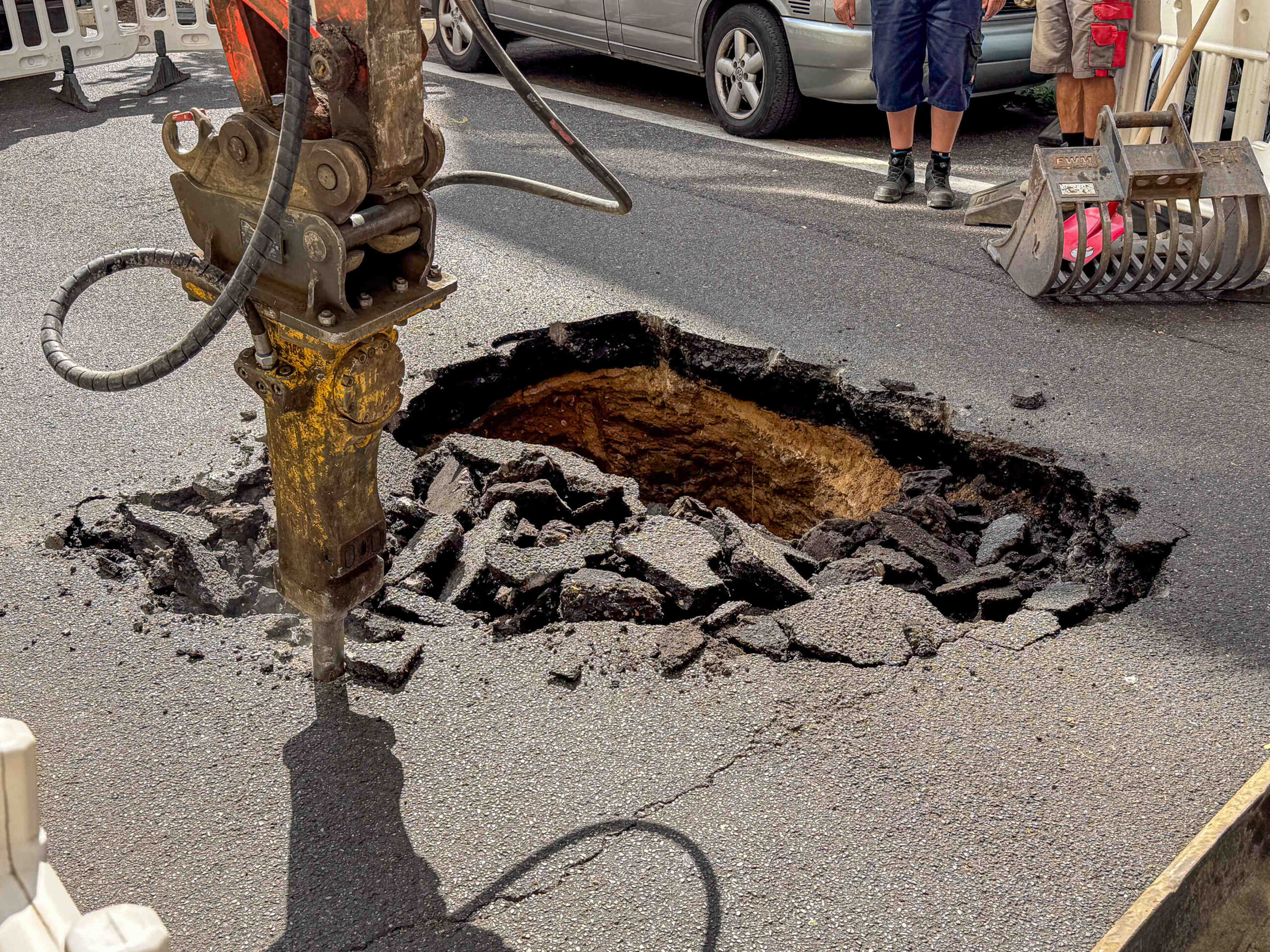 Über die genaue Ursache des Fahrbahneinbruchs liegen bislang keine gesicherten Erkenntnisse vor. Ob eine beschädigte Leitung, natürliche Bodenbewegungen oder andere Faktoren eine Rolle gespielt haben, ist Gegenstand der laufenden Untersuchungen.