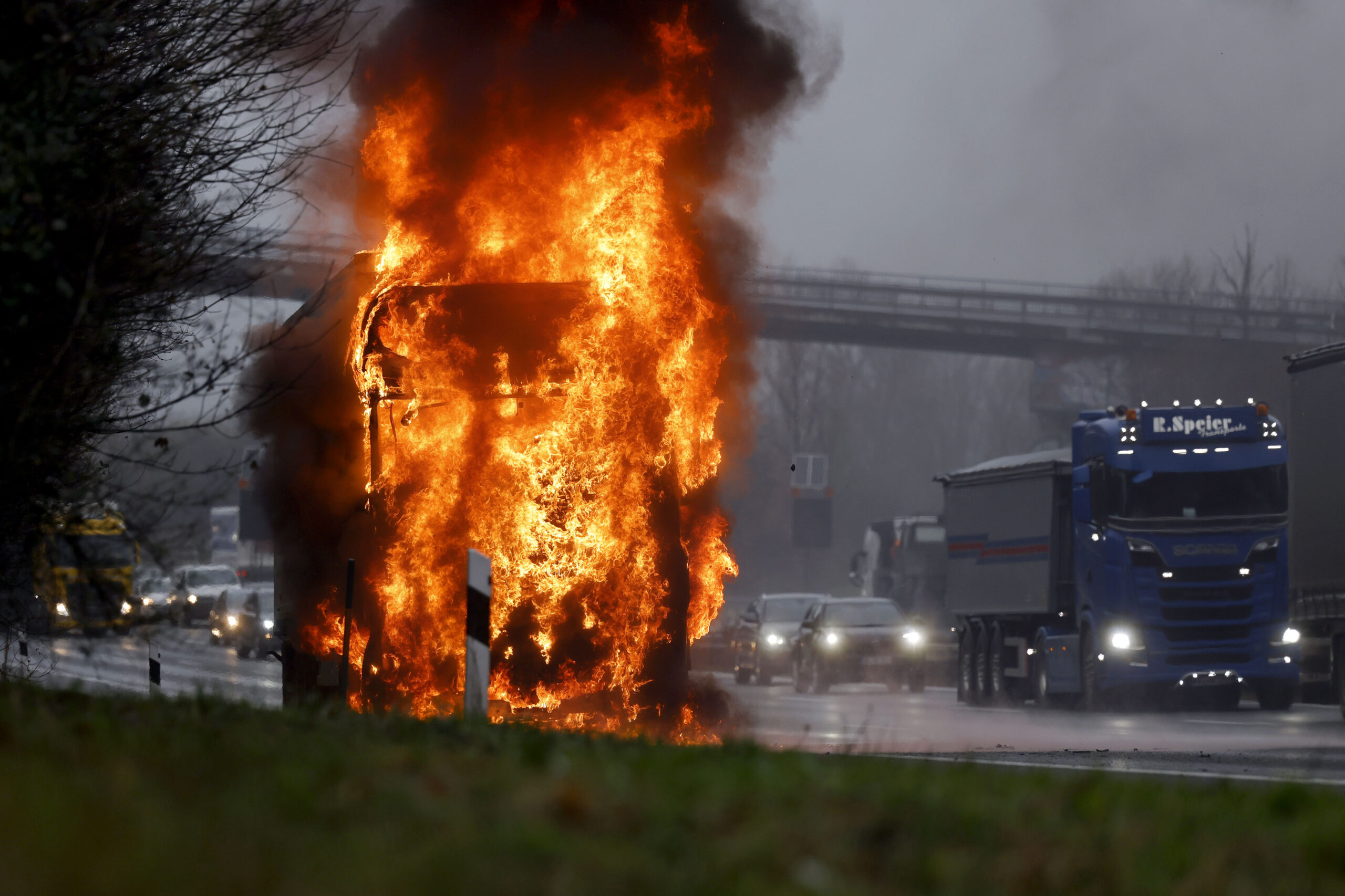 Wie die Polizei mitteilte, ereignete sich der Vorfall in der Nacht zu Montag (18. August) gegen 2.30 Uhr. Ein mit Elektroartikeln beladener Sattelschlepper war auf der Fahrt in Richtung Köln unterwegs, als ein Reifen platzte. Der Fahrer lenkte den Lkw noch auf den Standstreifen, bevor das Fahrzeug aus bislang ungeklärter Ursache Feuer fing.